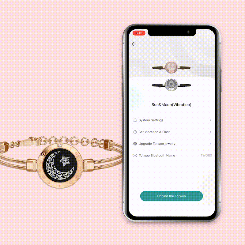 Customize your bracelets to flash or vibrate whenever you touch them. Adjust the light color and intensity to match your mood — and feel your partner’s touch, no matter how far apart you are.